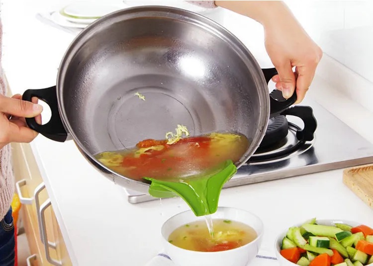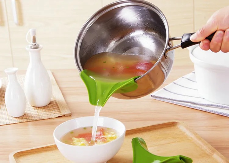 - Kitchen Funnel Tools Pots and Pans To Prevent Spills Circular Rim Deflector Liquid Silicone Funnel